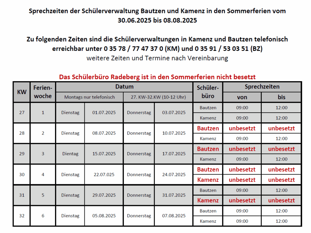 Die Planung des neuen Schuljahres 2025/2026 ist noch nicht abgeschlossen.