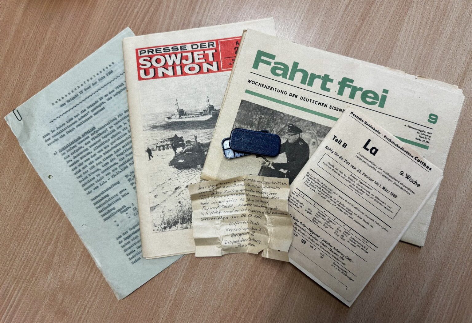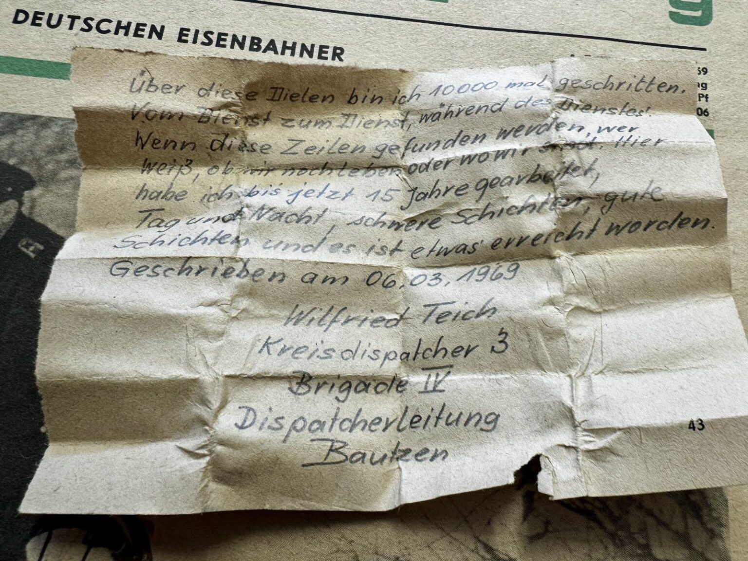 Bei Arbeiten zur Bodensanierung im Neubau der Kreismusikschule Bautzen entdeckten Bauarbeiter zwei spannende Zeitkapseln, versteckt unter einer hinteren Bodenplatte des Gebäudes. Die erste Box befand sich in einer alten Bäckertüte und enthielt unter anderem den Rechenschaftsbericht der Brigade IV aus dem Jahr 1968, eine sowjetische Presseausgabe, eine Wochenzeitung der Deutschen Eisenbahner und ein Fahrstellenheft. Die zweite Kapsel, verborgen in einer Tablettenschachtel, enthielt eine handschriftliche Notiz von Wilfried Teich, einem Eisenbahner, der dort bereits 15 Jahre tätig war.